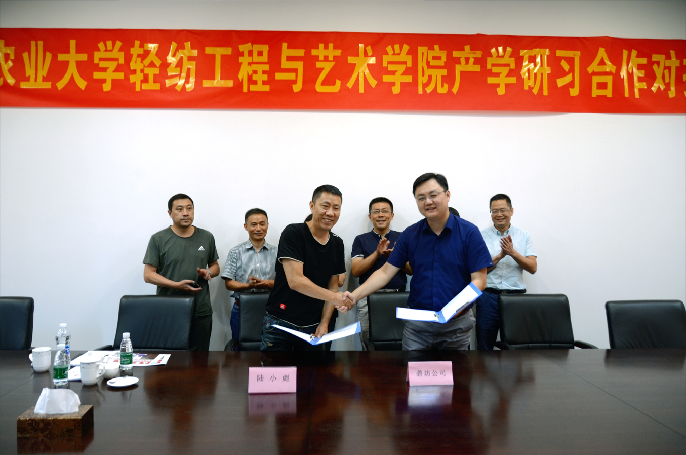 最后,在與會人員的共同見證下,陸院長、杜院長與卞總對“安徽農(nóng)業(yè)大學輕紡工程與藝術(shù)學院校外實習基地”進行了簽約和揭牌,并實地參觀了MatchU碼尚、百年益新面粉大樓及大礱坊歷史文化長廊,本次產(chǎn)學研習對接會議圓滿結(jié)束。